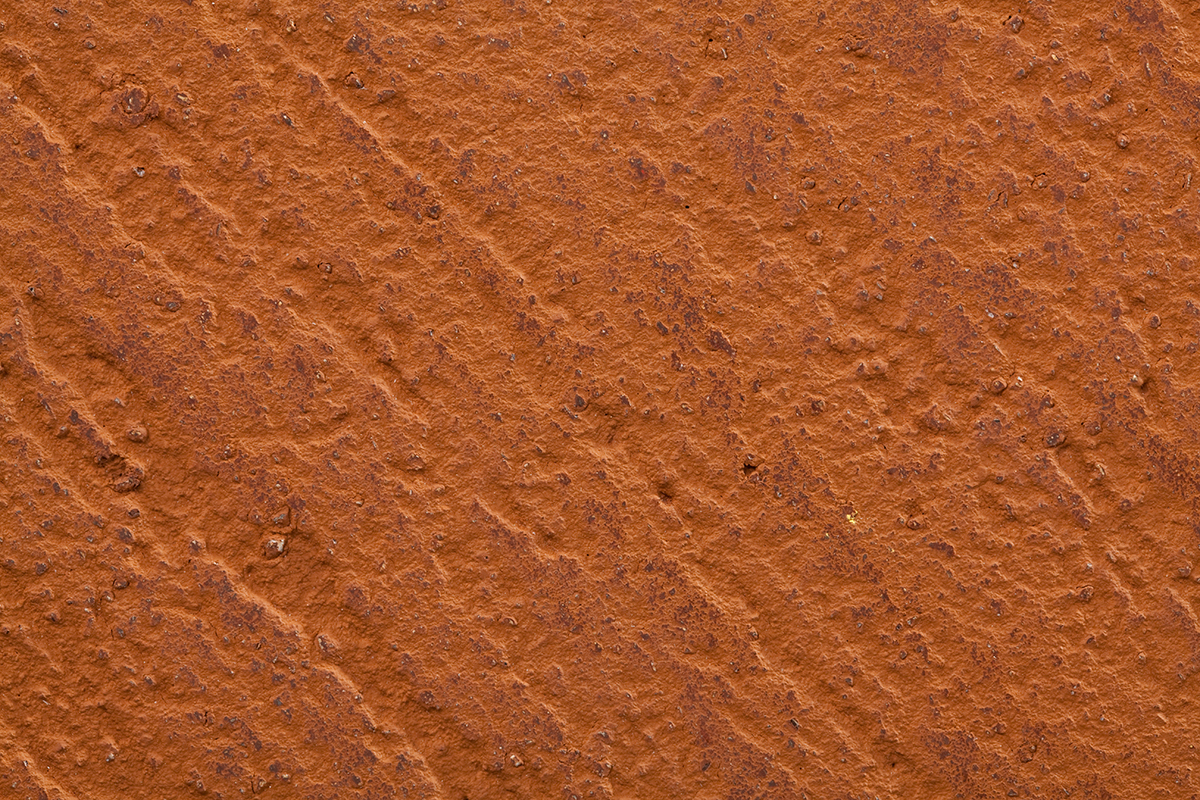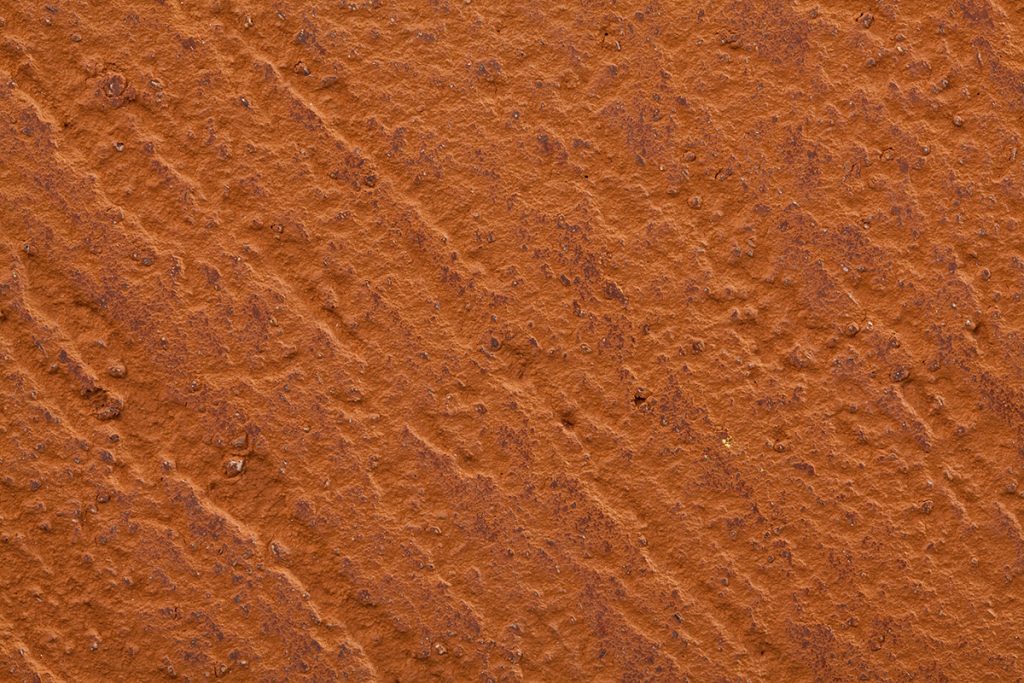Roter Ayersrock Lehmputz mit Strohzuschlag. Zusammengesetzt aus Sand, Ton und Stärke. Neben Ton und pflanzlicher Stärke sorgen feinste Marmorsande von besonderem Glanz für eine ebenso feine wie lebendige Struktur